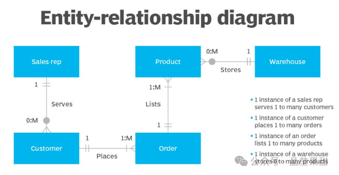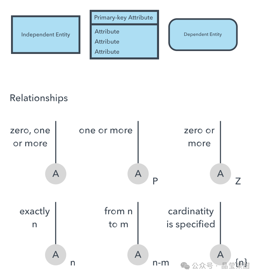 5. IDEF1X Notation :这种表示法强调数据建模的完整性,使用特定的符号表示实体、属性和关系。强调数据完整性和一致性。常用于政府和军事项目。