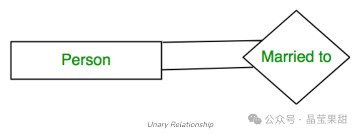 关系按照连接的实体种类和实体实例个数两个维度区分。按照连接的实体种类可分为一元关系,二元关系,三元或n元关系,其图形分别如下: