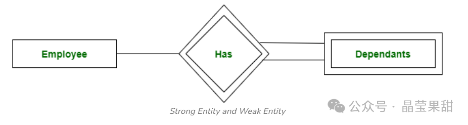 2. 弱实体:弱实体是指没有足够的属性来形成主键的实体。它依赖于其他实体(称为强实体)来唯一标识自己。弱实体通常用双矩形框表示。例如,"订单项"可能是一个弱实体,因为它需要依赖于"订单"实体来确定其唯一性。